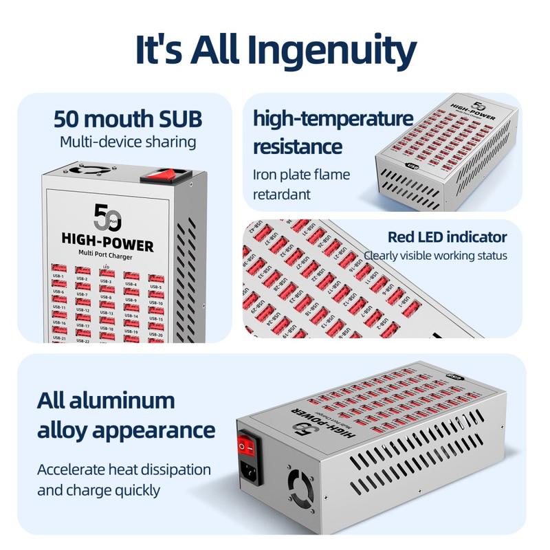 - 50 USB-poorten voor het gelijktijdig opladen van meerdere apparaten in commerciële en industriële omgevingen