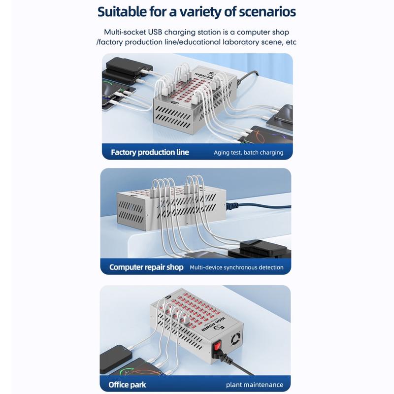 - Werkstations en reparatiewerkplaatsen: laad telefoons van klanten op en test apparaten in batches