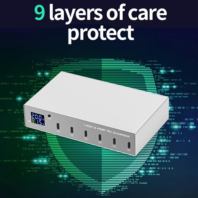 WLX-X6P 140W Desktop Oplaadstation - 6-poorts GaN USB-C snellader voor laptops, smartphones en tablets (EU-stekker)