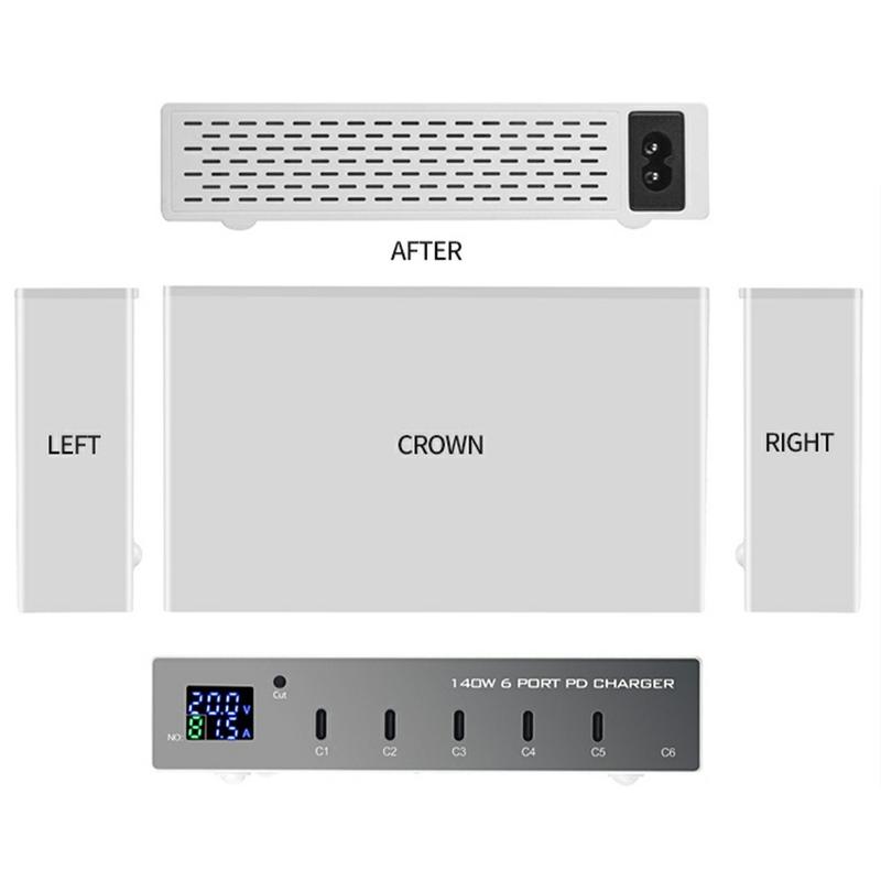 Het zeer efficiënte WLX-X6P 140W desktop-oplaadstation is een GaN-aangedreven hub die is ontworpen voor gebruikers die behoefte hebben aan betrouwbaar, snel opladen van meerdere apparaten in één compact apparaat. Uitgerust met zes USB-C poorten die elk tot 30W leveren, houdt het station laptops, tablets, smartphones en alledaagse gadgets moeiteloos van stroom voorzien - perfect voor bureaus thuis, kantooropstellingen of gedeelde oplaadomgevingen.