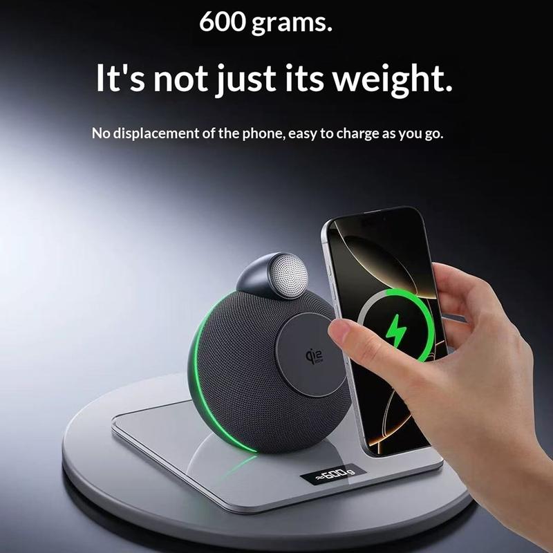 X16 Qi 2.2 25W draadloze oplaadstandaard met Bluetooth-luidspreker en sfeerverlichting - 3-in-1 magnetische oplader voor telefoon, horloge en oordopjes
