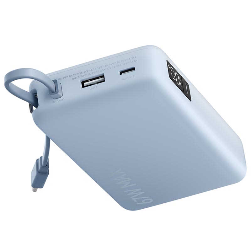 Deze powerbank is ideaal als u snel wilt opladen met een reisvriendelijk ontwerp. De 67W-uitgang is geschikt voor meer dan alleen telefoons, het opladen met 65 W vermindert de downtime en de geïntegreerde USB-C-kabel maakt het gemakkelijker om mee te nemen en overal te gebruiken. Voeg daar het duidelijke digitale display en het opladen via meerdere poorten aan toe en u krijgt een betrouwbare stroomoplossing voor werk, reizen en dagelijks gebruik.
