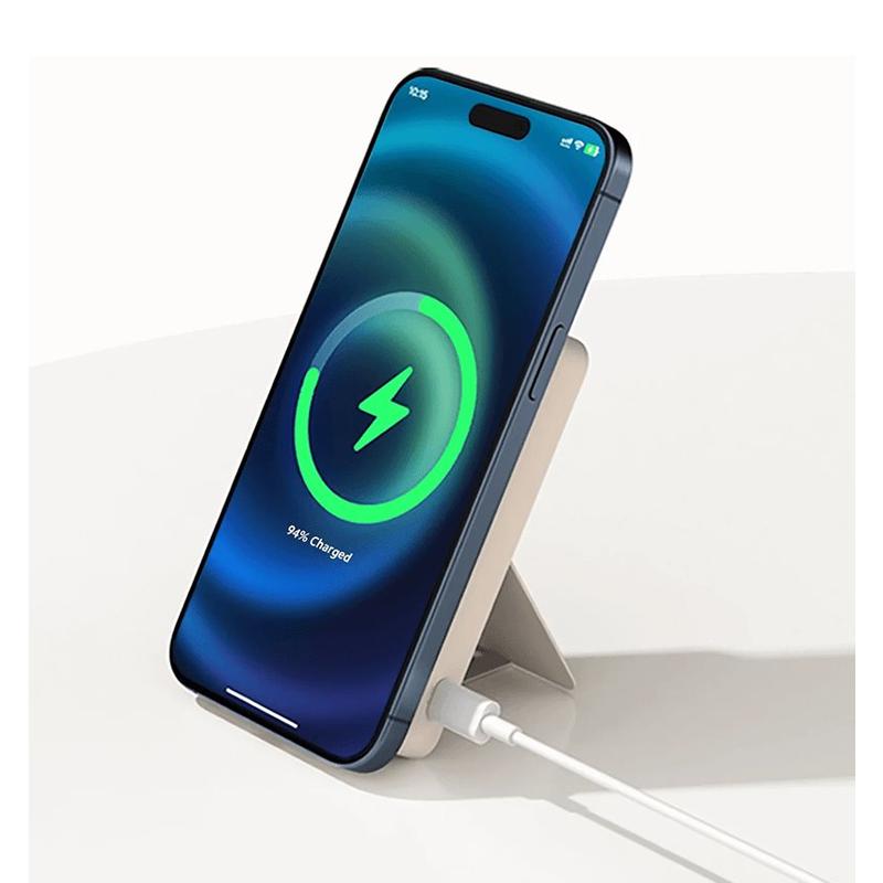 De powerbank ondersteunt Qi 2.0 draadloos snel opladen tot 15 W en levert soepel, efficiënt en stabiel opladen dankzij de nauwkeurige magnetische uitlijning. De bidirectionele USB-C-poort maakt gelijktijdig bedraad en draadloos opladen mogelijk, zodat je je telefoon van stroom kunt voorzien terwijl de powerbank zelf oplaadt - ideaal voor drukke dagen, reizen en gebruik onderweg.