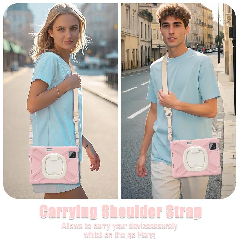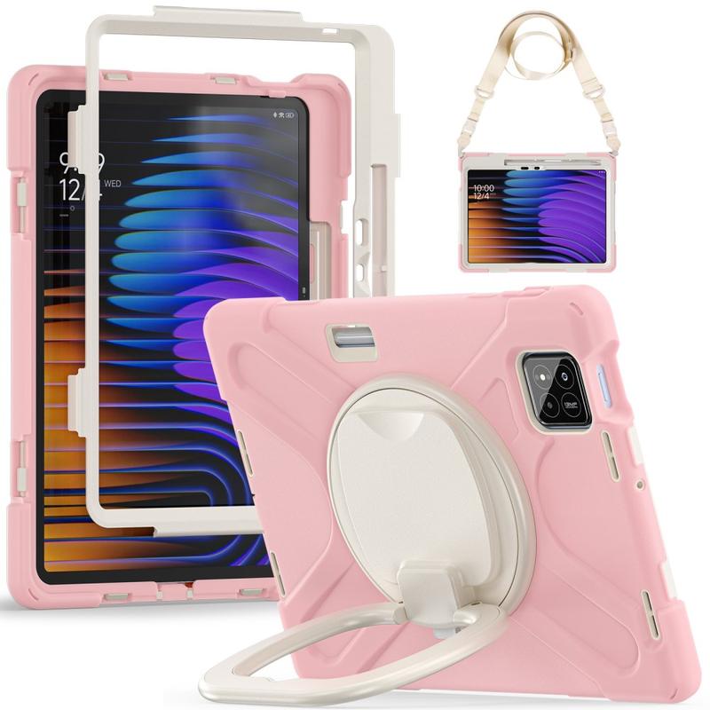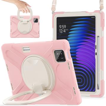 Xiaomi Pad 8/8 Pro Heavy Duty 360 Hoesje met Draagriem - Roze / Wit