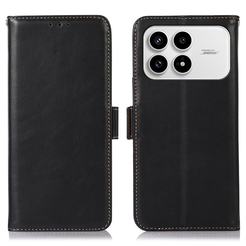 Ervaar tijdloze elegantie en dagelijks gebruiksgemak met de leren portemonnee hoes voor Xiaomi Redmi K90, Poco F8 Pro. Gemaakt van echt rundleer en voorzien van RFID-bescherming, combineert deze multifunctionele foliotas luxe, veiligheid en gemak - waardoor het de perfecte alles-in-één accessoire is voor je smartphone.