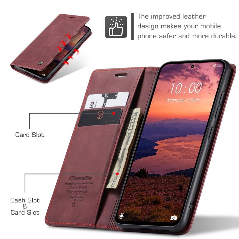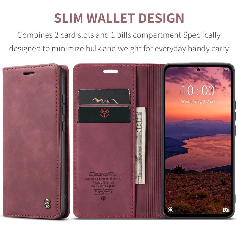 - Ingebouwde magneten houden de Caseme 013-serie portemonnee-etui gesloten