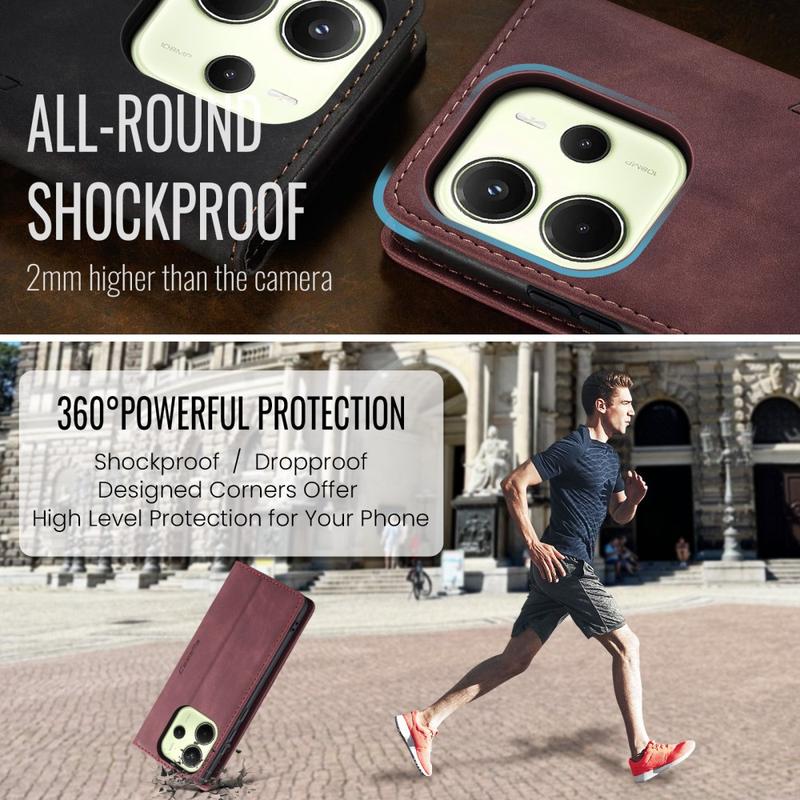 Een combinatie van TPU en polyurethaan biedt volledige bescherming voor Xiaomi Redmi Note 14 4G en beschermt deze tegen stof, vuil, stoten, krassen en dagelijkse slijtage. Magnetische aantrekkingskracht houdt de behuizing gesloten en het slimme ontwerp maakt handsfree gebruik mogelijk tijdens het bekijken van media-inhoud.