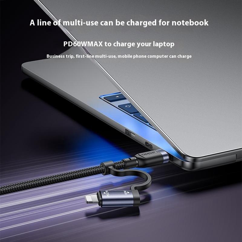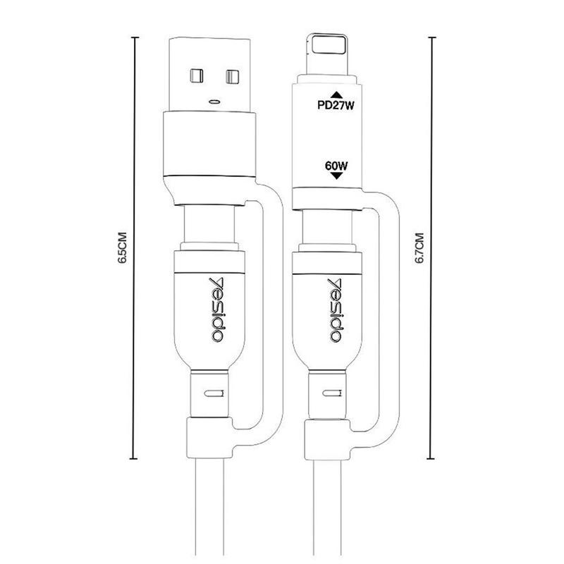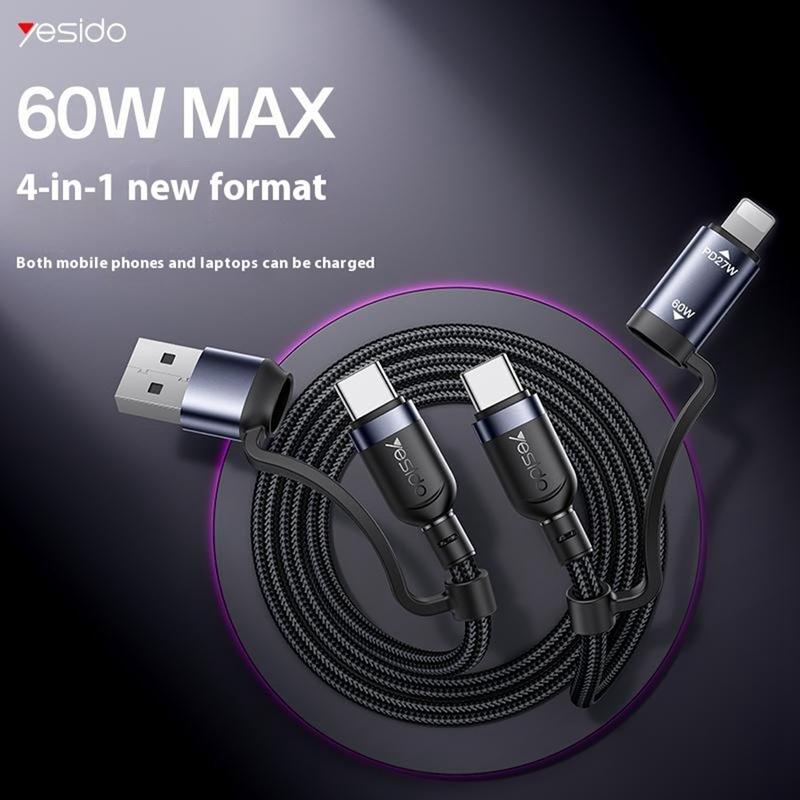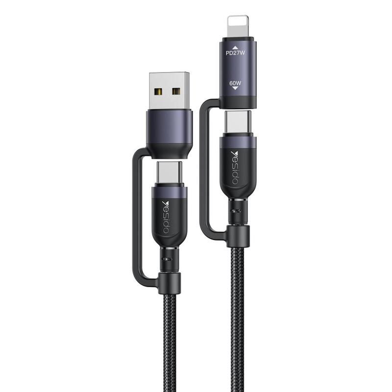 Vereenvoudig uw oplaadopstelling met de YESIDO CA200 4-in-1 multi-oplaadkabel. Deze kabel is ontworpen om meerdere soorten apparaten met één enkele kabel te ondersteunen en combineert USB-A- en USB-C-ingangen met USB-C- en Lightning-uitgangen, zodat u smartphones, tablets en accessoires van verschillende merken kunt opladen zonder meerdere kabels mee te hoeven nemen.