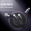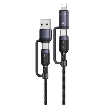 Yesido CA200 4-in-1 oplaadkabel - USB-A / USB-C naar USB-C, Lightning (8-pins) gevlochten snellaadkabel, tot 60 W, 1,2 m
