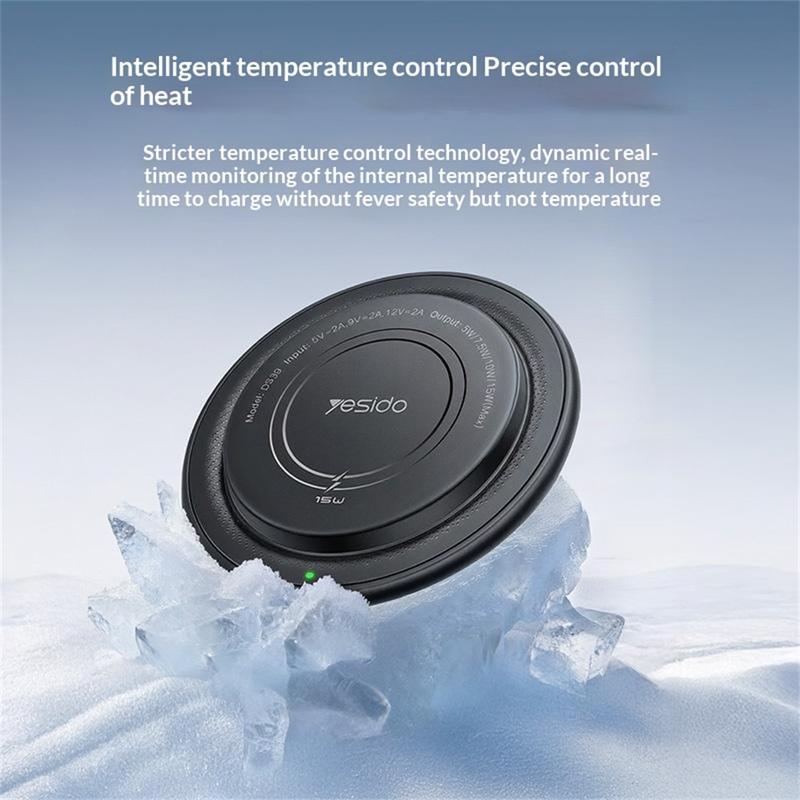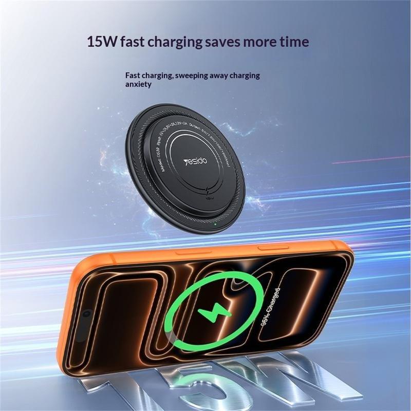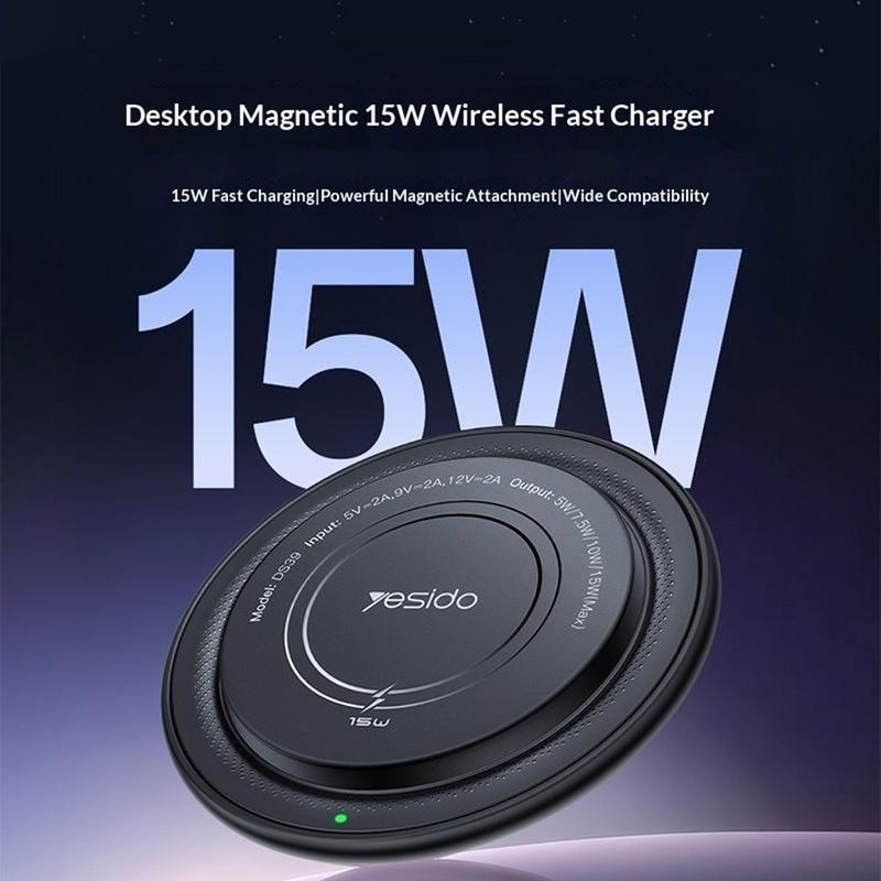 Yesido DS39 15W magnetische draadloze oplader - rond sneloplaadstation voor smartphones en draadloze oordopjes