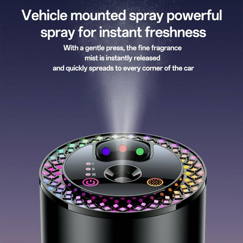 Ultrasone diffusors werken door het breken van geurvloeistoffen in microdeeltjes met behulp van hoogfrequente trillingen, waardoor een fijne nevel ontstaat zonder warmte, waardoor de integriteit van de geur behouden blijft. Het RGB "sterrenhemel" lichteffect is geïnspireerd op de omgevingsverlichtingstechnologie die wordt gebruikt in hoogwaardige auto-interieurs, ontworpen om de stress van de bestuurder te verminderen en zijn concentratie te verbeteren tijdens nachtelijke reizen.