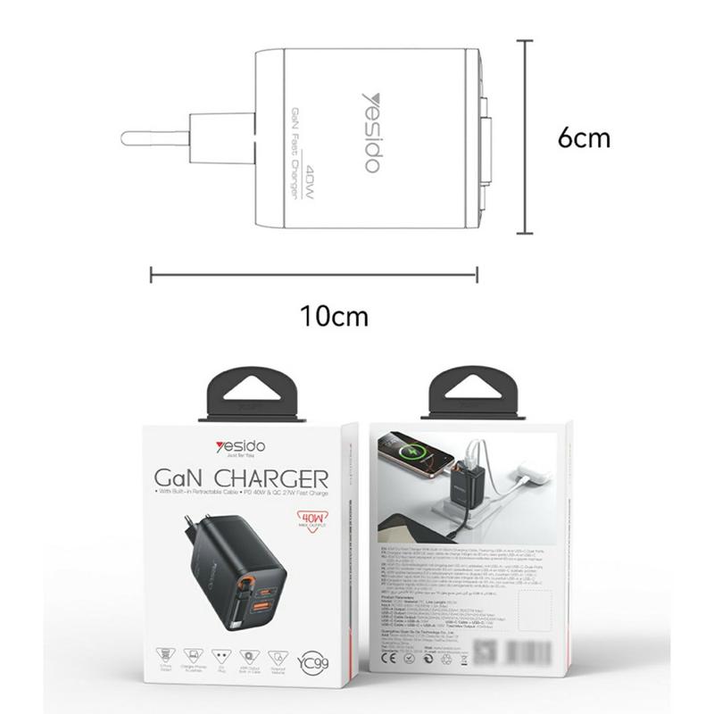 Laad slimmer en sneller op met de YESIDO YC99 40W GaN Fast Charger, een compacte en efficiënte oplossing ontworpen voor moderne apparaten. Uitgerust met dubbele poorten, geavanceerde Gallium Nitride (GaN) technologie en een ingebouwde intrekbare kabel, combineert hij kracht, gemak en veiligheid - perfect voor thuis, op kantoor of onderweg.