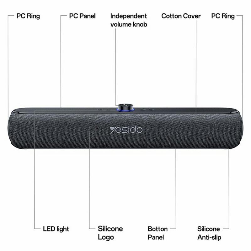 Yesido YSW42 draagbare Bluetooth-luidspreker/soundbar 20W - TF-kaart & Type-C-ingang, handsfree bellen, 7 uur speeltijd