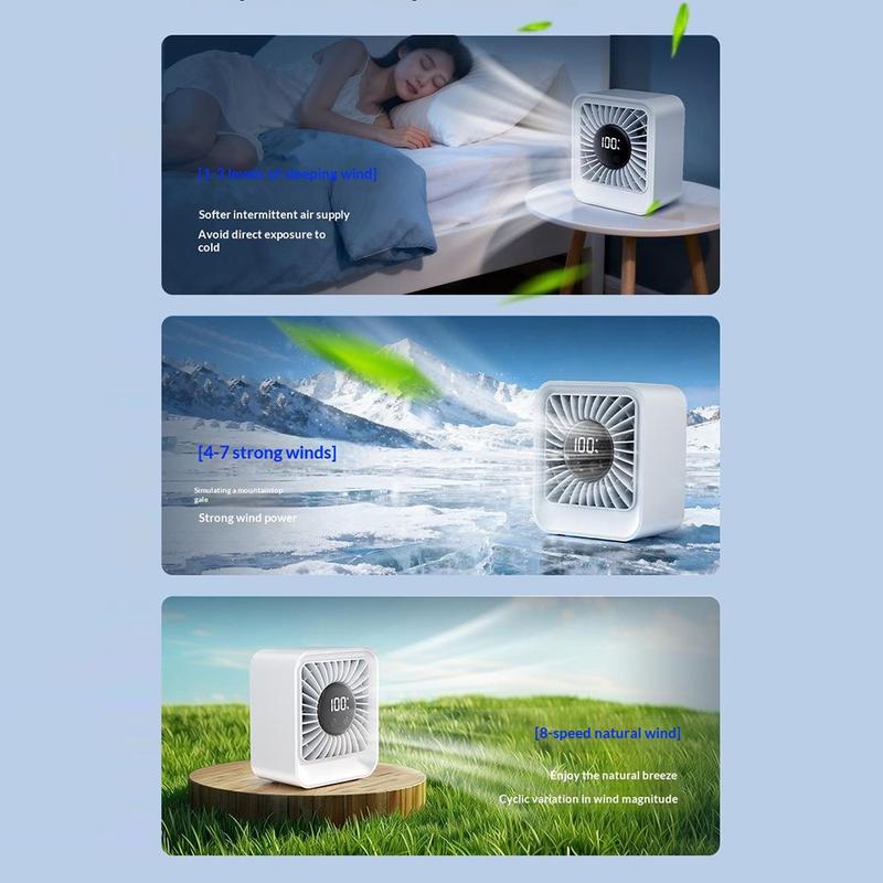 YS-G7 tafelventilator - via USB oplaadbare tafelventilator met 8000 mAh-batterij, 8 snelheden, led-display en timer