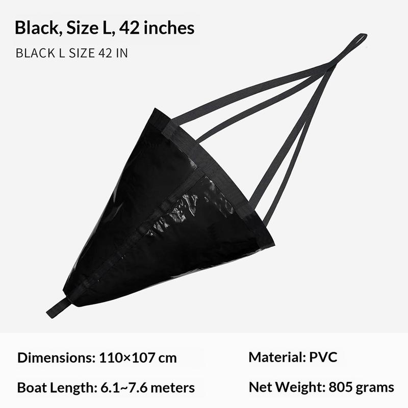 Verbeter de controle en stabiliteit op het water met deze L-size 42-inch zeeanker loodlijn. Ontworpen om weerstand te creëren in het water, helpt het driften en plotselinge bewegingen veroorzaakt door wind en golven te verminderen - handig voor jetski's, opblaasboten, kajaks, zeilboten en kleine motorboten. Het compacte, lichtgewicht ontwerp is gemakkelijk op te bergen in kleine ruimten en de automatische opening aan de onderkant helpt bij het soepel uitrollen wanneer dat nodig is. Gemaakt van duurzaam PVC met hoge sterkte en verstevigde banden, gemaakt voor regelmatig gebruik op zee. Let op: ankertouw en drijver zijn niet inbegrepen.