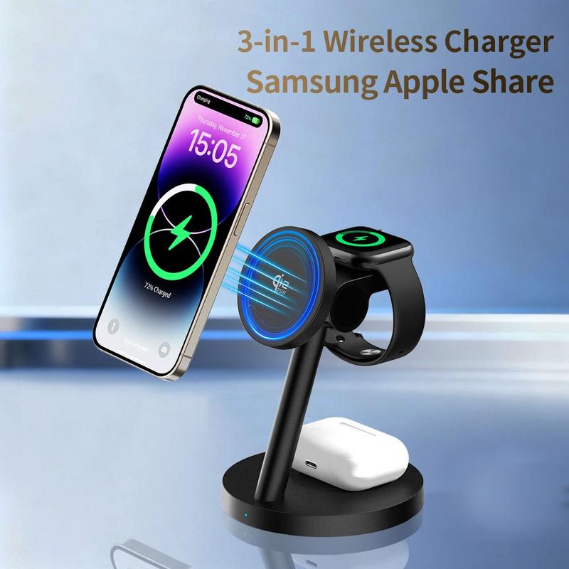 - 3-in-1 draadloos oplaadstation voor telefoon, smartwatch en draadloze oordopjes